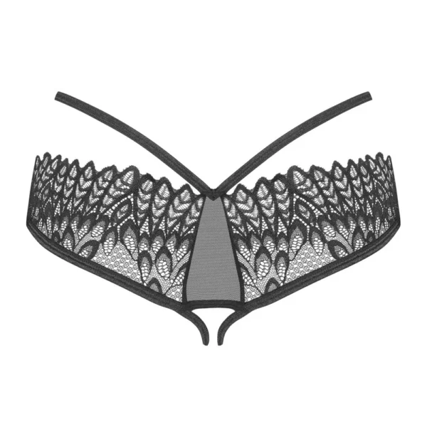 String ouvert noir aspect dentelle